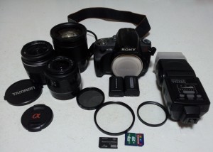 LO QUE TRAE: CUERPO SONY A330 10.1 MEGAPIXELES 2 BATERIAS 2 TARJETAS DE MEMORIA DE 4 GB CORREA SONY BOLSO SONY LENTE SONY SAM 18-55 LENTE MINOLTA 35-70 LENTE TAMRON 28-200 FLASH YONGNUO PARA SONY YN460 CARGADOR ORIGINAL SONY EXTRAS: FILTROS UV DE 72 & 55 MM + FILTRO POLARIZADOR 55MM NOTA: lente minolta sin tapas trasera ni delantera*