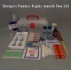 Contenido: · 01 Termómetro clinico · 01 Tijera de 13 cms. · 01 pinza metalica ( 7cms ) · 01 Botella de alcohol 95° 60 ml. · 01 Botella povidona yodada 30 ml. · 01 Botella de alcohol 95° 60 ml. · 01 rollo tela adhesiva 1.25 cms x 5 mts. · 01 rollo algodón hidrófilo prensado de 50 grs. · 01 gasa hidrófila esteril de 1 x ½ yarda ( 91 x 45.5 cms. ) · 01 vendaje triangular para cabestrillo, medidas: 130 x 90 x 90 cms. · 01 vaso desechable de 300 ml. · 01 paquete de pañuelos desechables · 01 instructivo de primeros auxilios básicos. · 25 vendas adhesivas ( parches curitas ) · 10 tabletas de dipirona ( analgésico ) · 02 tablillas de madera 4 x 20 cms. · 01 trozo de madera 15 cms para torniquete, ligaduras para hemorragias. · 26 unidades cotonitos de algodón. · 01 venda de gasa de 2” x 5 yardas · 01 venda de gasa de 3” x 5 yardas · 01 venda de gasa de 5” x 5 yardas